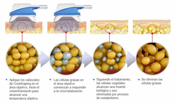 - El enfriamiento controlado cristaliza los triglicéridos en los adipocitos